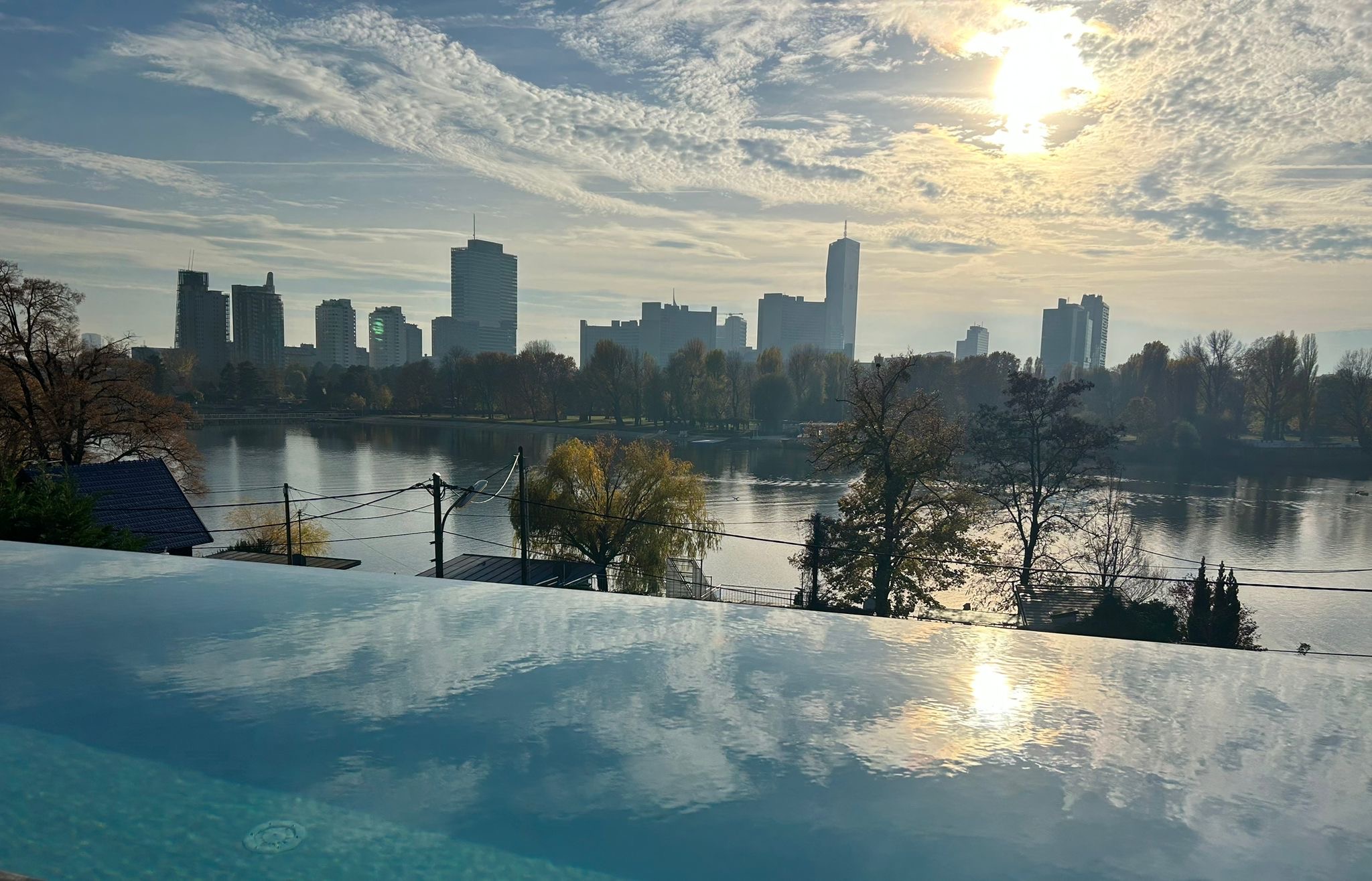 Am ruhigen, sonnigen Ufer der Alten Donau, wenige Gehminuten von der U-Bahn entfernt, arbeiten wir mit Aussicht auf die sich im Wasser spiegelnde Skyline von Wien. Der geheizte Dachpool lädt in den Pausen zum schwimmen und träumen ein. Das traumhafte Panorama der Alten Donau inspiriert uns im hellen Kursraum und auf der großen Poolterrasse.
